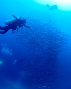 海洋保護区のバリカサグエリアはダイバーの制限がありますが潜れたらダイナミックさはフィリピンNO1のワイドエリアでバラクダー、パミラカン島のギンガメアジの大きな群れがダイバーを迎えてくれますが流れや水深がありドリフトのスキルが必要です。