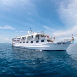 大型クルーズ船「スクーバネット」で行く、シミラン諸島〜リチェリューロックを巡るダイブクルーズ。定員20名の少人数制で、ゆったりとくつろげる清潔感あふれる船内が魅力です。ベテランスタッフによるきめ細やかなサービスと、タイと中華のエッセンスを取り入れたプーケットスタイルの料理も好評があります。